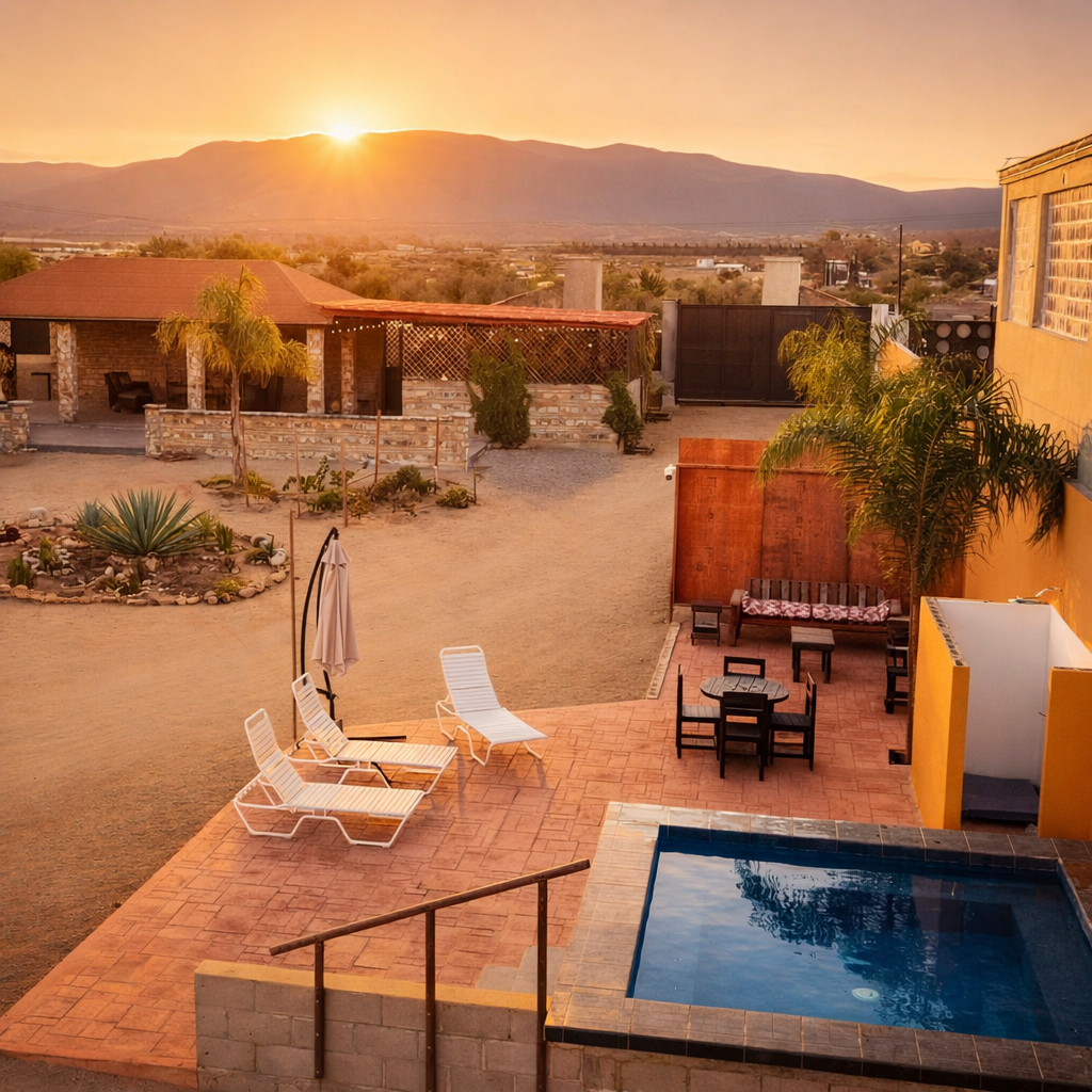 A visual journey through our boutique retreat in Valle de Guadalupe, where thoughtful design meets the surrounding vineyard landscape.